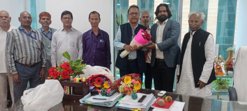 ऑल इंडिया एनबीसीसी इंप्लाइज एसोसीएशन के पदाधिकारीयों कर्मचारी ने गुलदस्ता फूल मालाओं से सम्मानित किया।